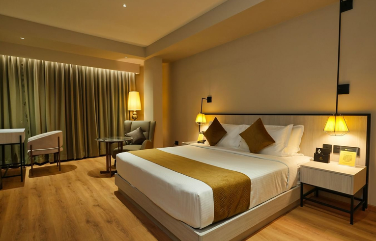 Step into the Grandiose Suite, our most luxurious sanctuary at 450-sq. ft., designed for opulence and comfort. Ideal for two adults and one child, this suite blends elegance and sophistication in every detail. We can accommodate an additional adult with an extra mattress available for an additional charge. It features a king size bed adorned with plush linens to premium amenities that cater to your every need. Here, you can enjoy the fresh air and stunning views. Indulge in a setting that's crafted for ultimate relaxation and rejuvenation during your stay in Wayanad.
